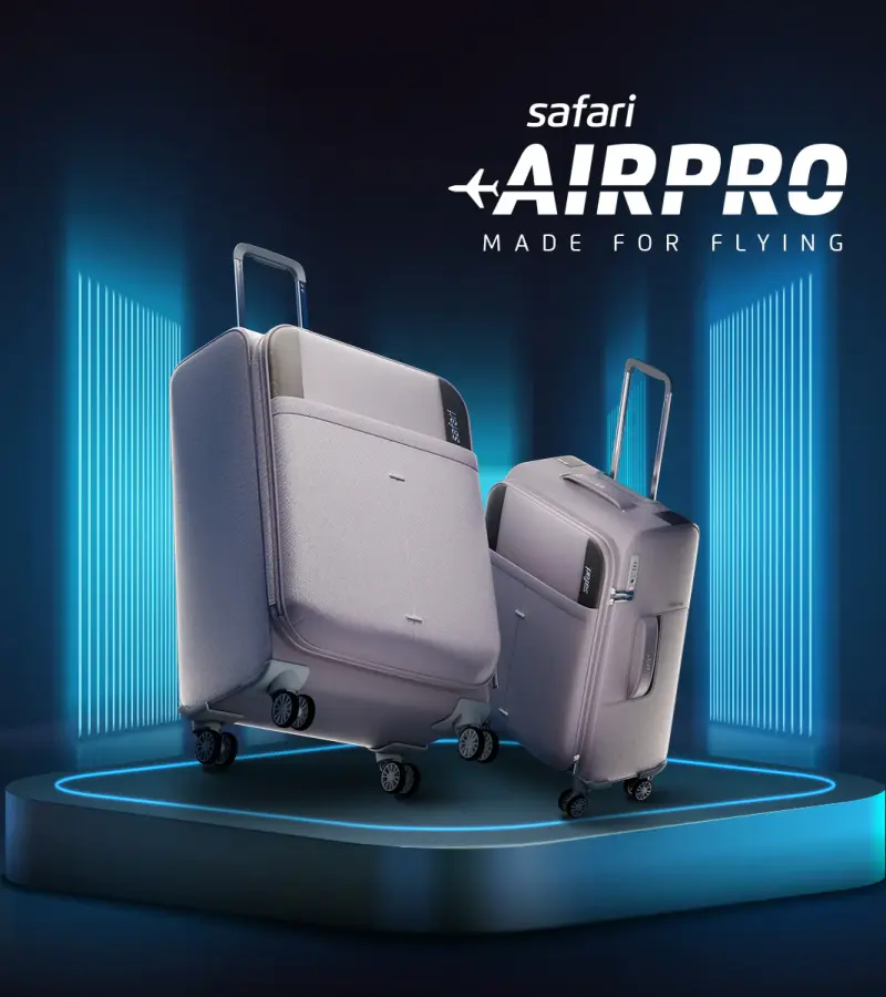 The Safari Airpro Printed Trolley Bag, available in sleek black and Grey, is an ideal travel companion. This soft luggage option comes in three sizes, offering versatility for various travel needs including more capacity while being remarkably light weight: the cabin size with 43 liters capacity, medium with 82 liters, and large offering 145 liters Even though the small size is a mere 2.20kg, making it a breeze to handle, the medium weighs just 2.90kg and even the large size, offering substantial packing space, remains light at 3.5kg. Key features include a TSA lock for enhanced security, dual wheels for smooth maneuverability, and an expandable design for extra packing space. Its Durable build, organized interior and Eassily accessable front pocket make it a practical choice for travelers. Additionally you can enjoy peace of mind with a 5-year warranty on this product, ensuring long-lasting reliability and customer satisfaction. For detailed information, you can visit the Safari Bags product page.